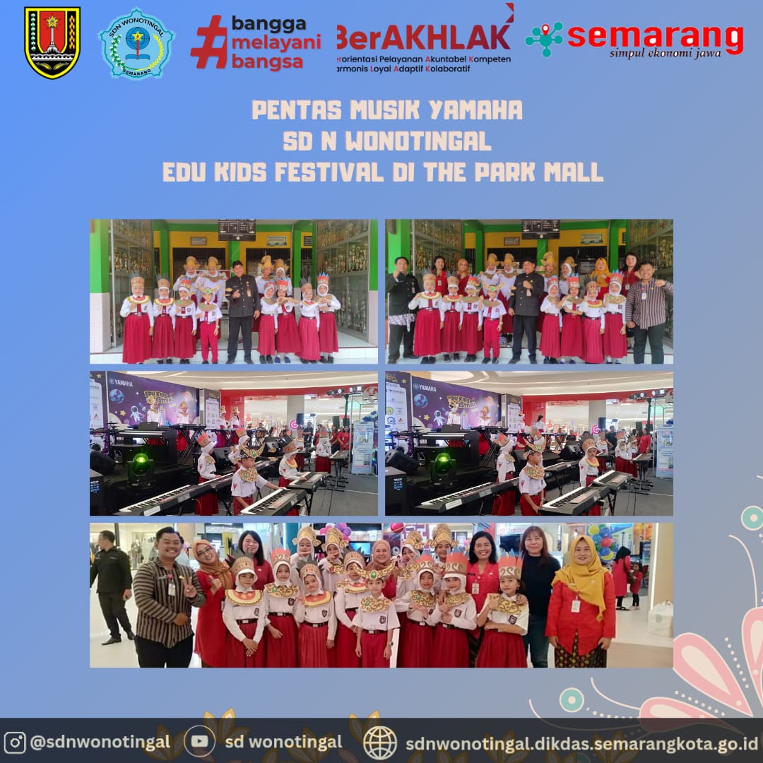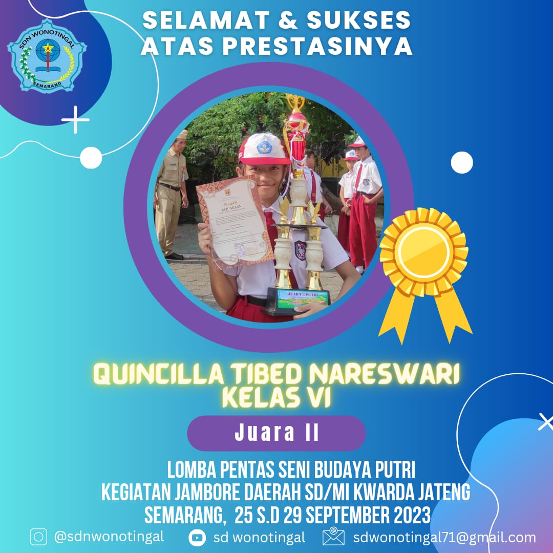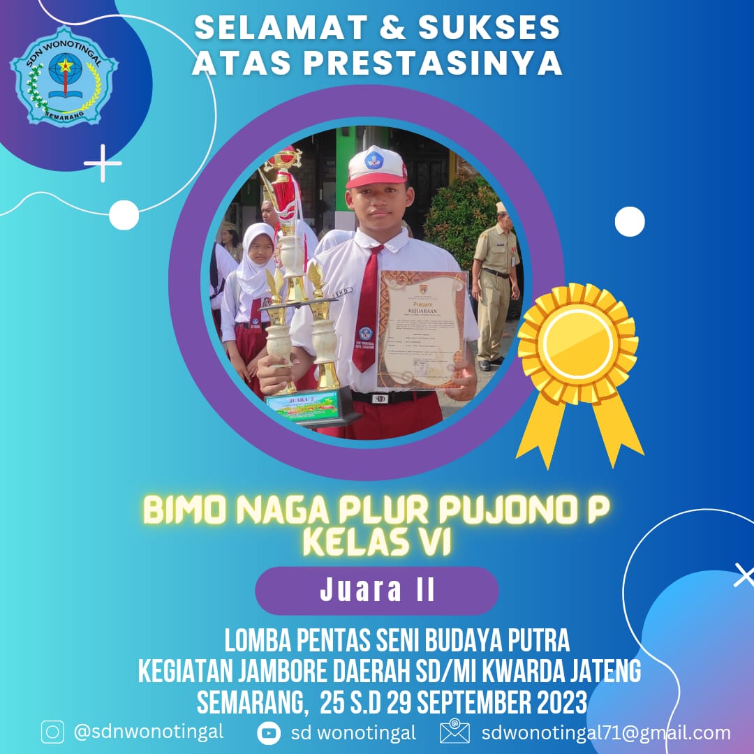 Puji syukur kepada Alloh SWT, Tuhan Yang Maha Esa yang telah memberikan rahmat dan hidayahNya sehingga website SD Negeri Wonotingal Candisari Semarang ini dapat terbit. Salah satu tujuan dari website ini adalah untuk menjawab akan setiap kebutuhan informasi dengan memanfaatkan sarana teknologi informasi yang ada. Kami sadar sepenuhnya dalam rangka memajukan pendidikan di era berkembangnya Teknologi Informasi yang begitu pesat, sangat diperlukan berbagai sarana prasarana yang kondusif, kebutuhan berbagai informasi siswa, guru, orangtua maupun masyarakat, sehingga kami berusaha mewujudkan hal tersebut semaksimal mungkin. Semoga dengan adanya website ini dapat membantu dan bermanfaat, terutama informasi yang berhubungan dengan pendidikan, ilmu pengetahuan dan informasi seputar SD Negeri Wonotingal Candisari Semarang.