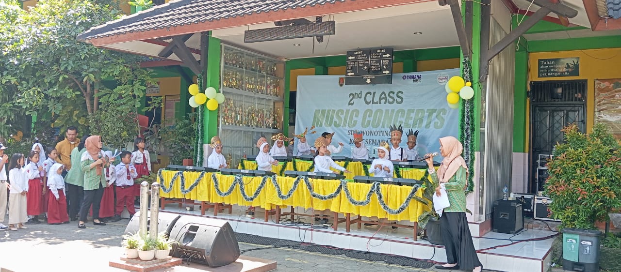 Konser Musik Step 1 dan 2 Kelas 2 SDN Wonotingal berlangsung lancar pada hari Selasa, 12 Desember 2023